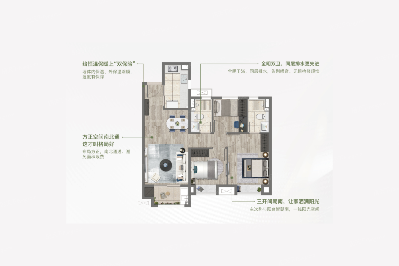 户型设计方方正正,家具摆放很方便。整个区域采光充足,通风良好。小区绿化也很出色,散步时特别惬意。