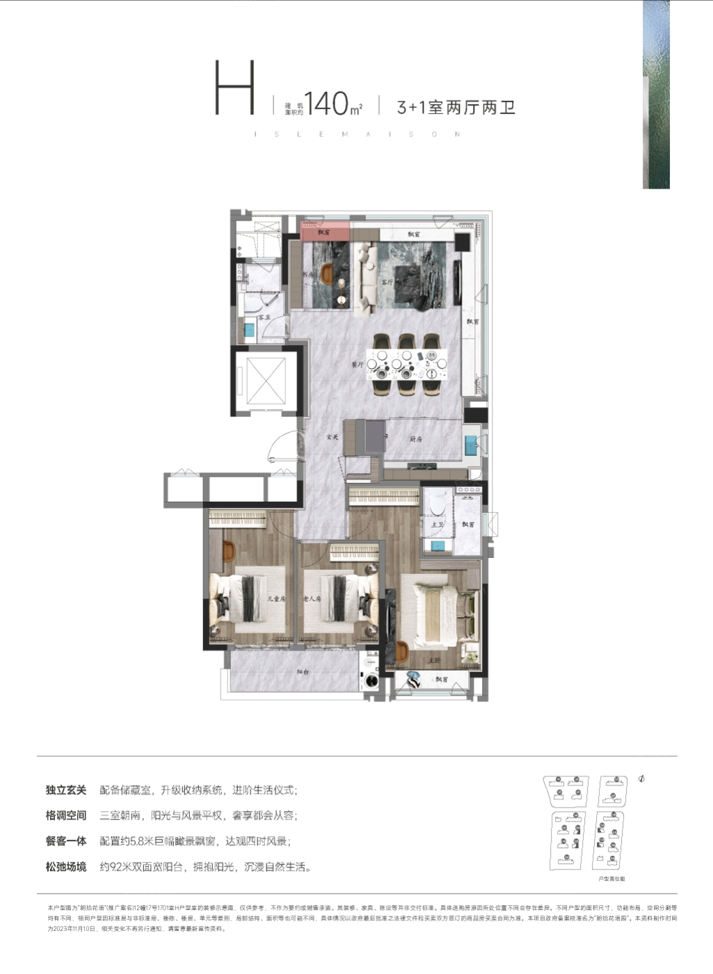 18***48朗拾花语的定位是舒适性住宅,小区内共有1556户,但独特之处在于小区中间有天然河流和市政公园,为居民提供了宜居舒适的居住环境。 -