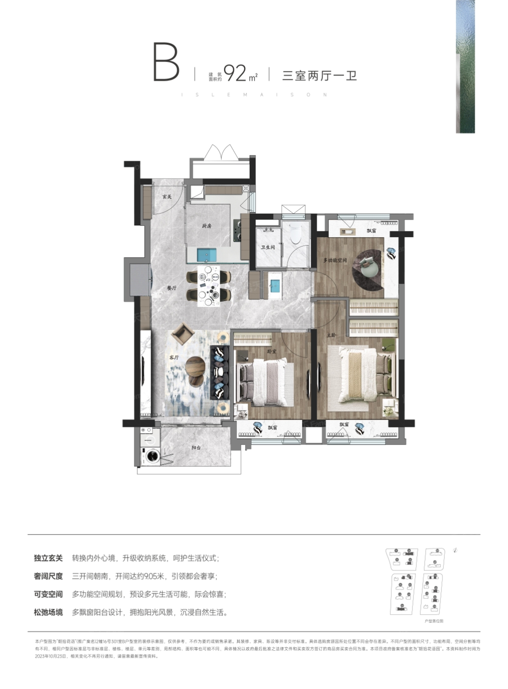 这个95㎡的户型挺吸引人的,样板间设计得很美,布局也合理。70年大产权让人觉得安心,购买时更加有保障。