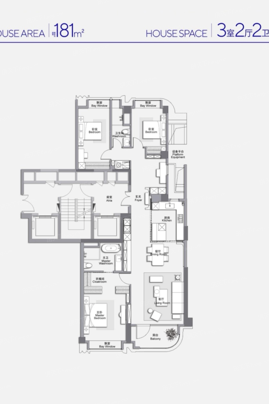 3室2厅1厨2卫 建面181.00㎡