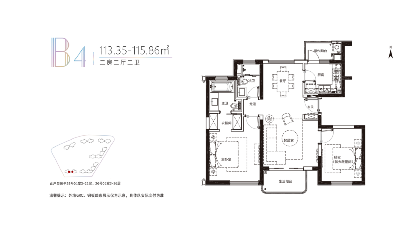 2室2厅1厨2卫 建面113.35㎡