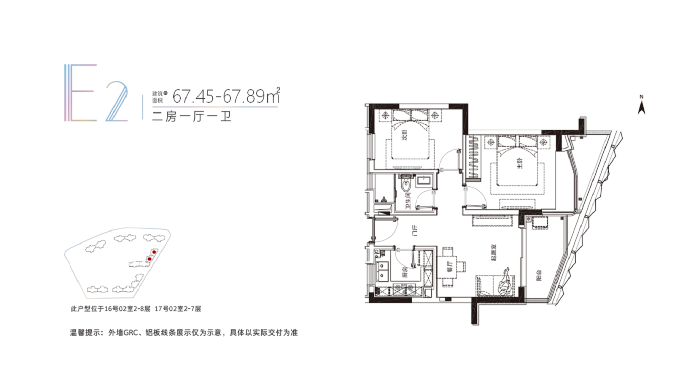 2室1厅1厨1卫 建面67.45㎡