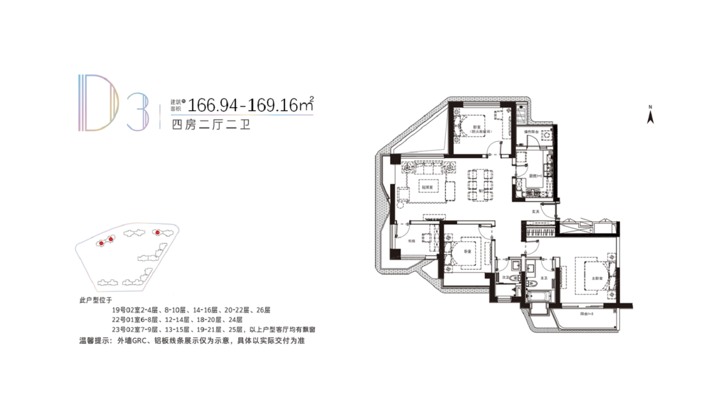 4室2厅1厨2卫 建面166.94㎡