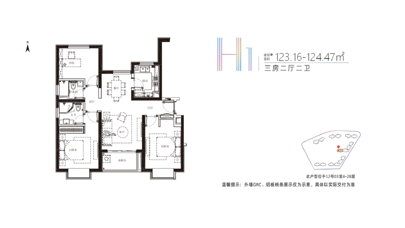 3室2厅1厨2卫 建面123.16㎡