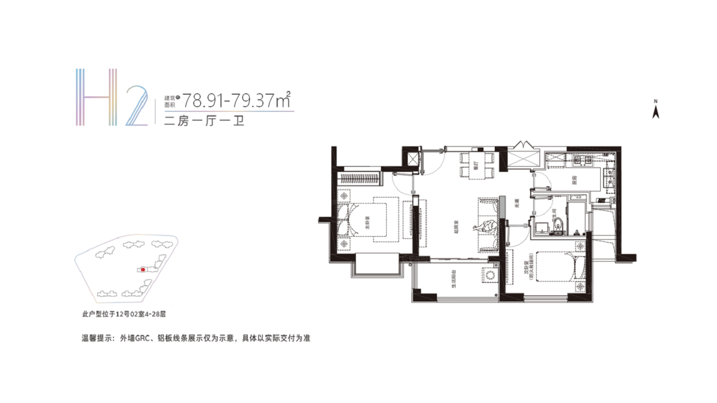 2室1厅1厨1卫 建面78.91㎡