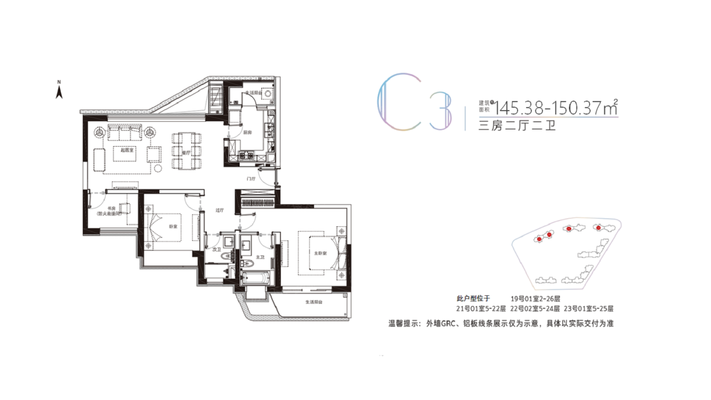 3室2厅1厨2卫 建面145.38㎡