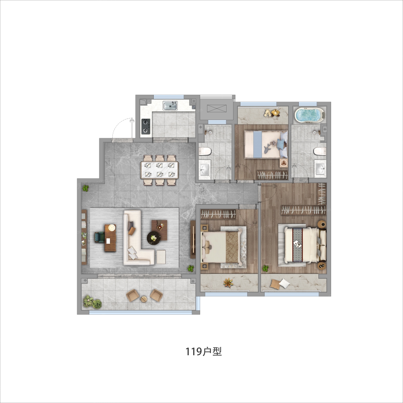 听起来您对这套119㎡的户型挺满意的!确实,如果小区环境不错、物业也管理到位,再加上户型本身实用、性价比高,那确实是个很值得考虑的选择。