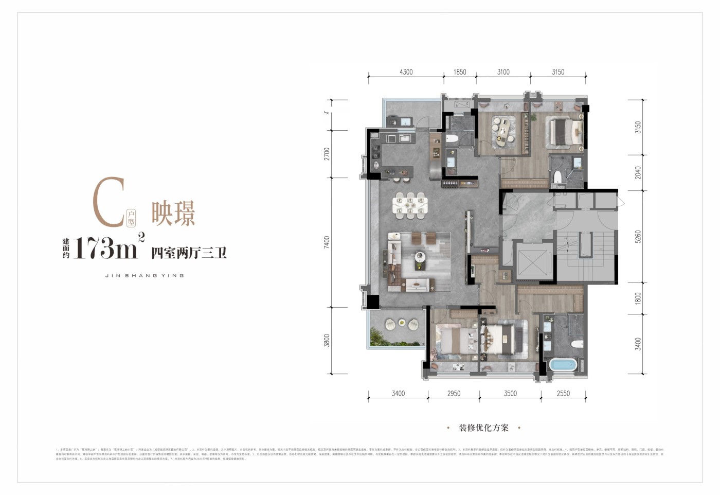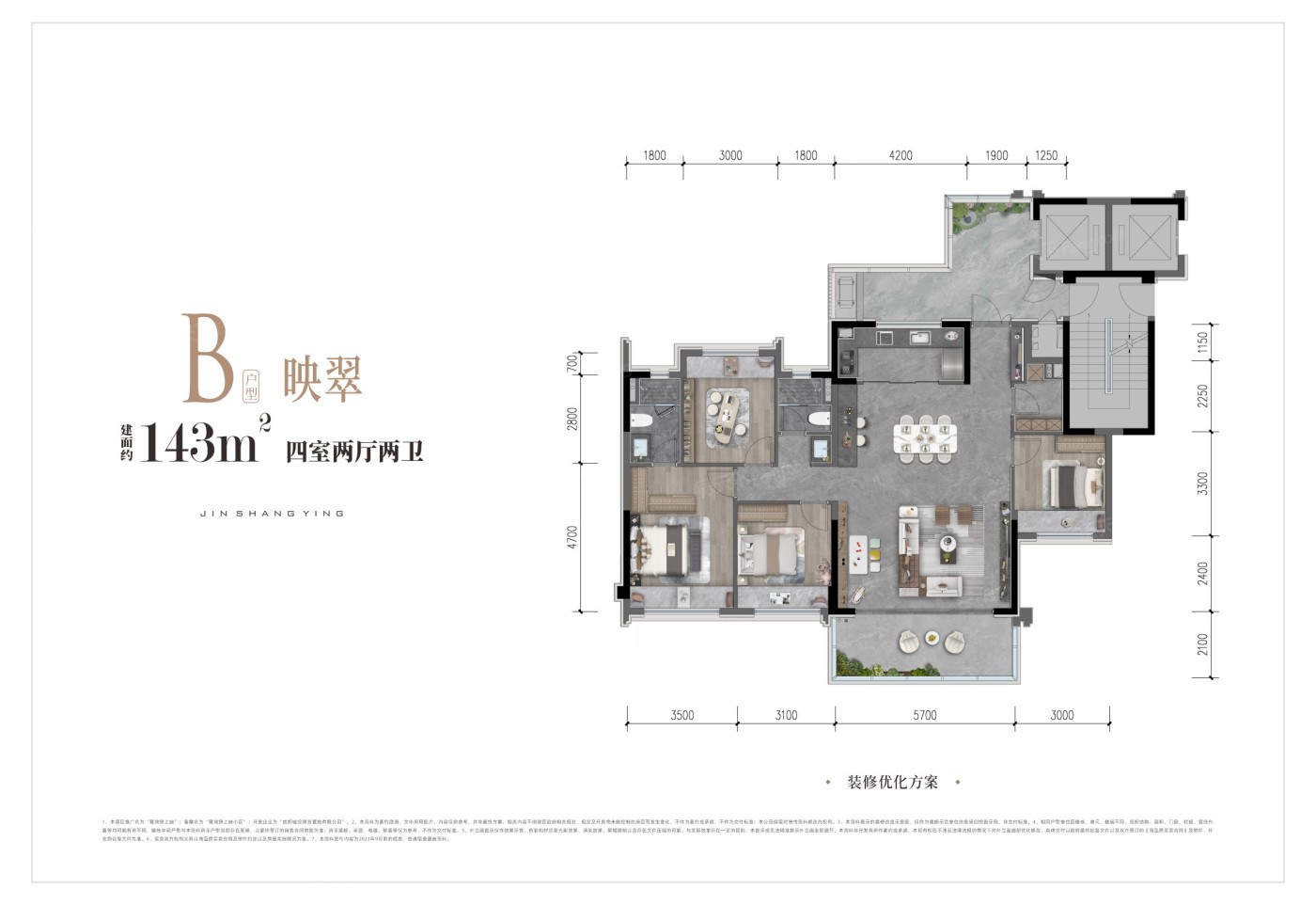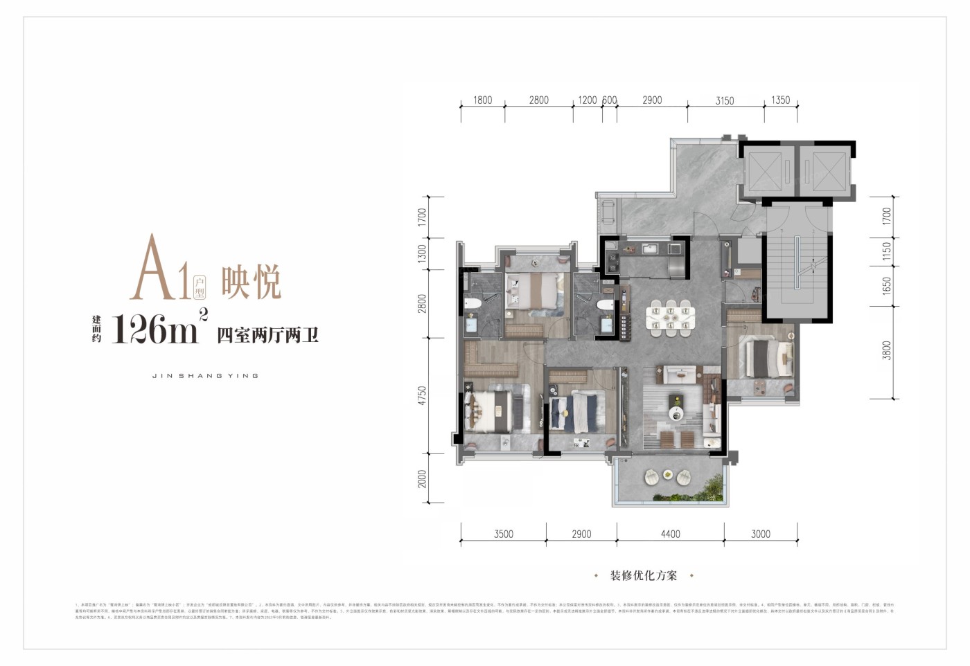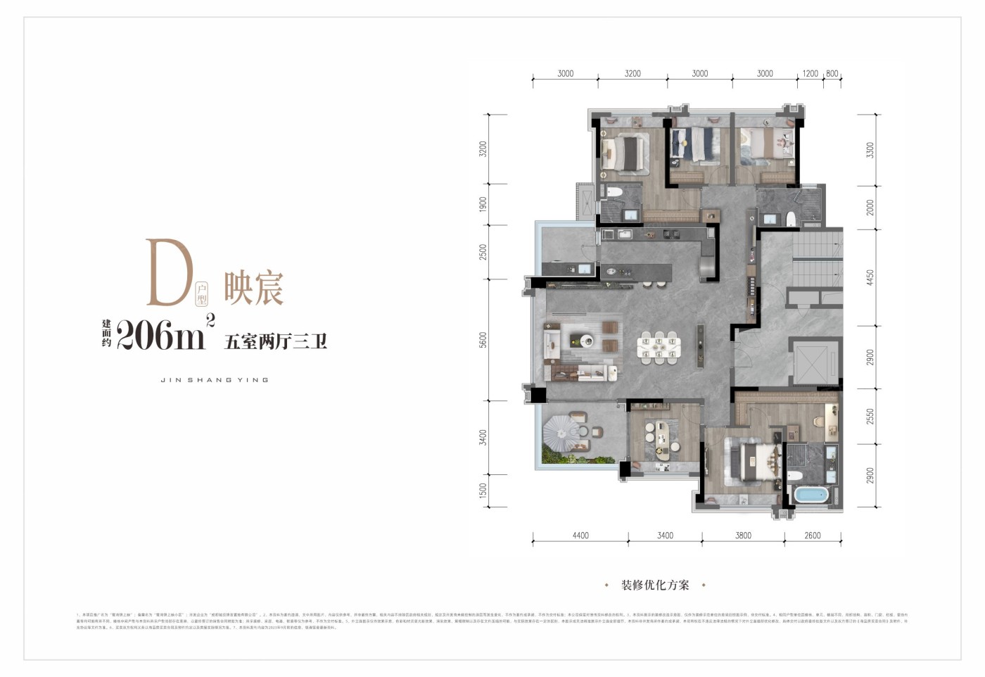 该楼盘提供4种户型,面积从126到206平方米不等,其中四居和五居户型为主推。户型设计注重动静分区和干湿分离,功能布局合理,空间利用率高,动线规划流畅,非常适合居住。