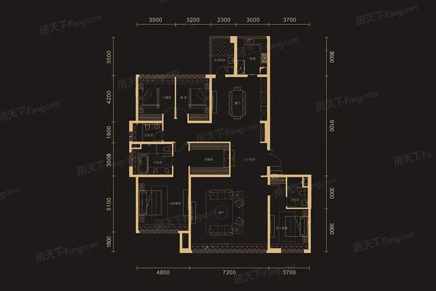 这个大户型设计得较为合理,令人满意。不过,由于楼盘间距较紧凑,采光条件稍显不足,影响了整体的居住舒适度。