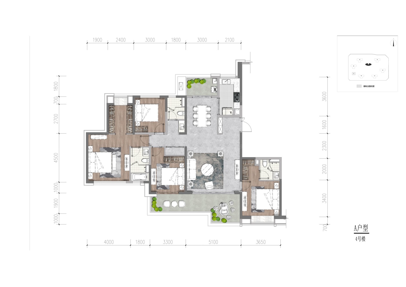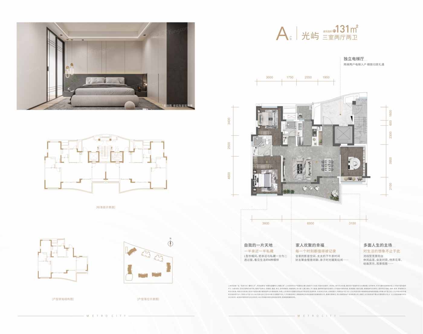 主打的户型有170㎡和238㎡,都是四室两厅的设计。空间布局相当合理,充分利用了每一寸面积。70年产权也让人觉得更加可靠。