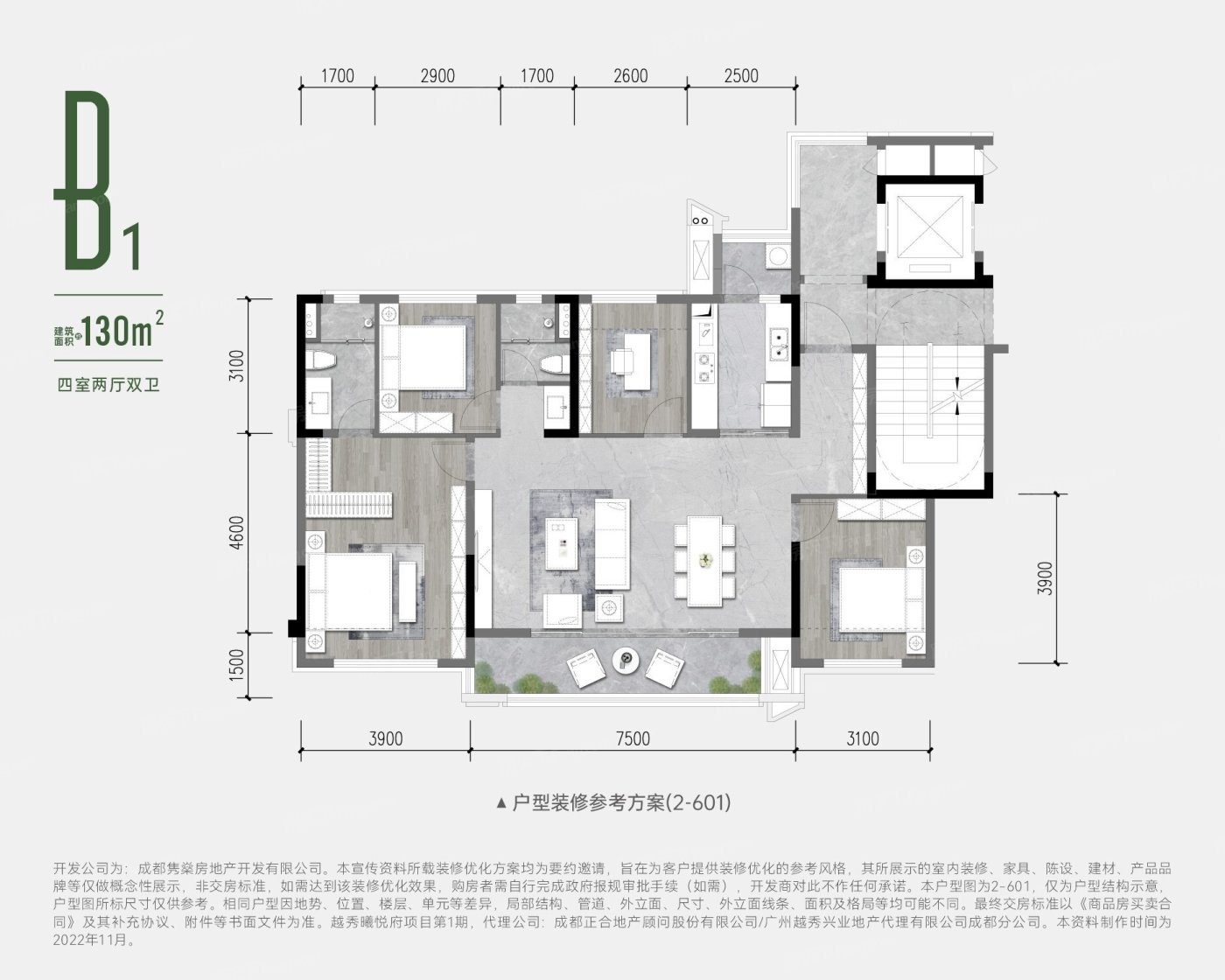 这个楼盘的主力户型有130平方米和118平方米,都是四室两厅一卫的布局。产权期为70年,属于住宅大产权,使用年限很有保障。水电费用也按民用标准,整体来说比较经济实惠。
