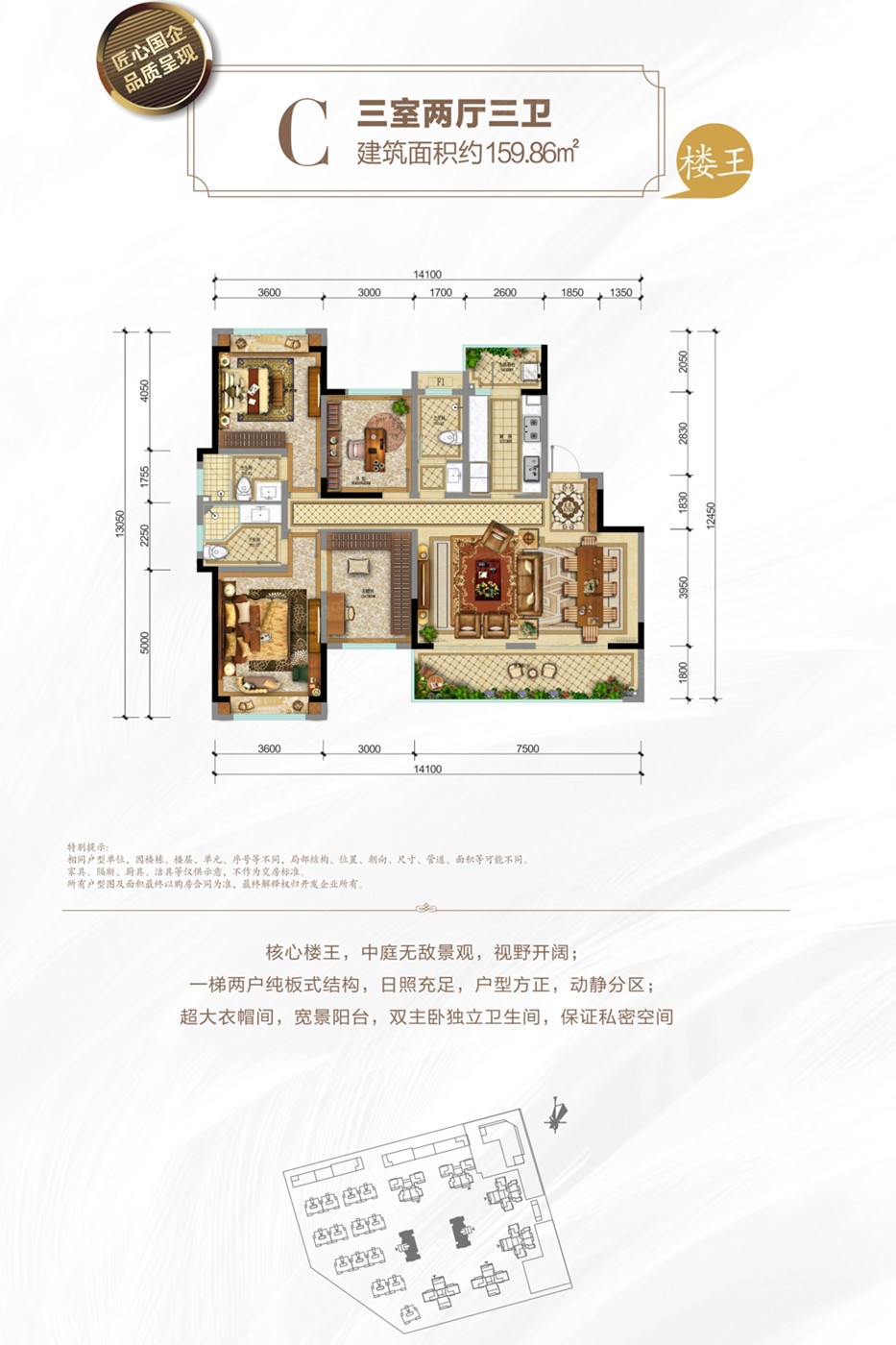 这个小区户型选择挺多的,一共有8种,面积从121到159平不等,都是70年产权,适合改善型家庭住。