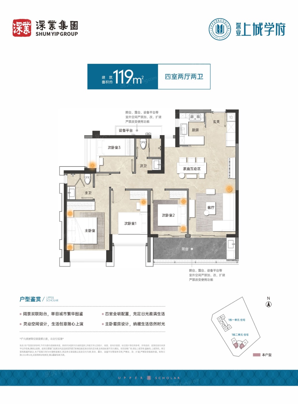 这个盘的户型挺实用,99平做成了三房两厅一卫,空间利用得不错,119平的四房也够宽敞,适合多口之家。开发商口碑一直在线,交付质量相对靠谱,整体比较让人放心。