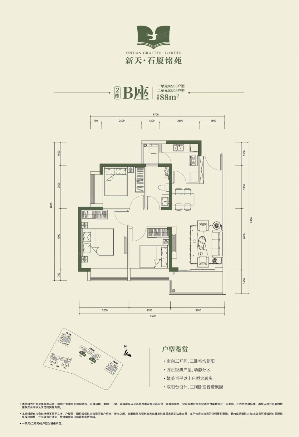 这个项目提供了三种不同面积的户型,分别在72到88平方米之间。对开发商的声誉还不太了解,不过看品牌的名气,应该质量上都能有所保障。