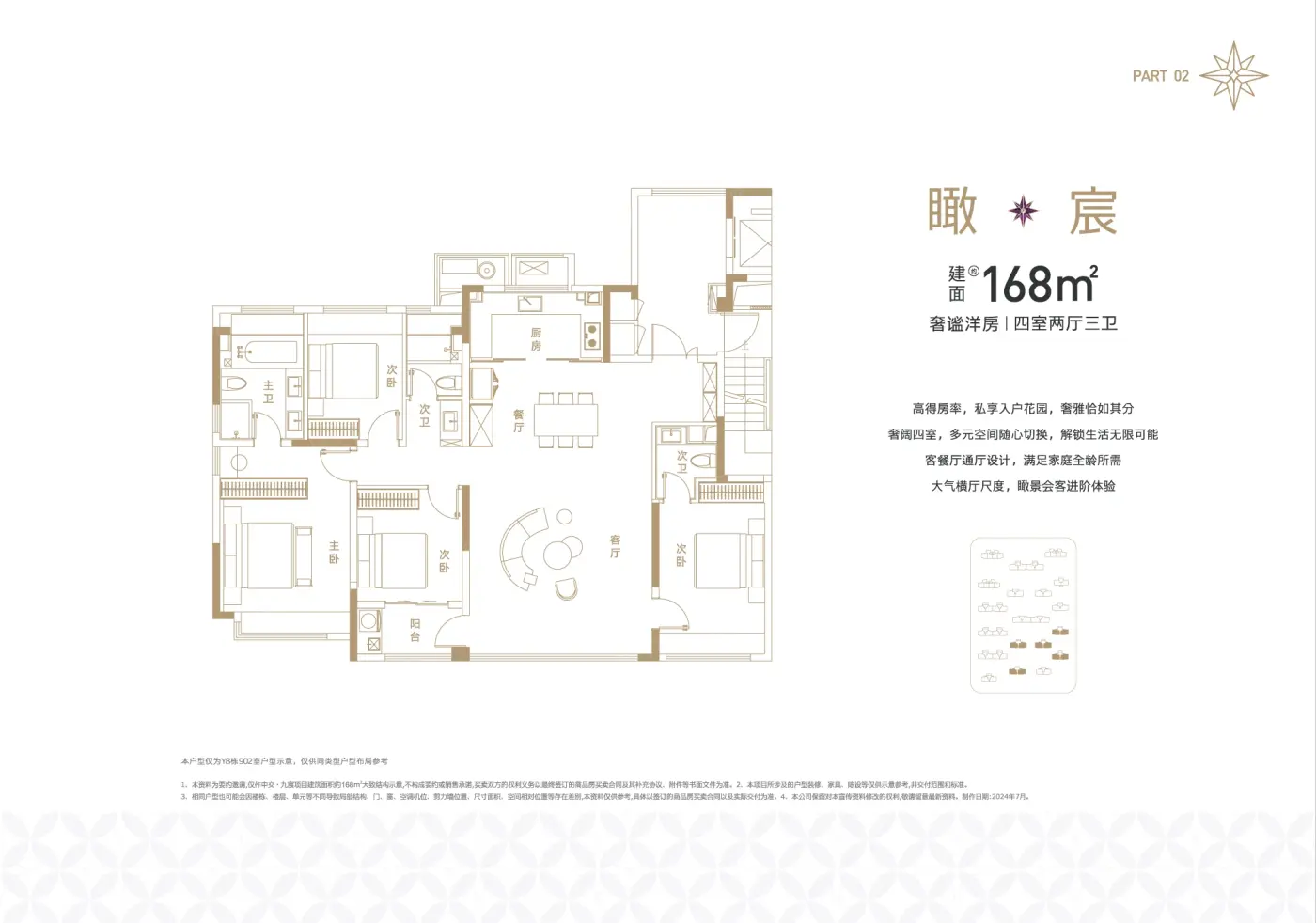 这个168㎡的户型整体表现不错,楼间距控制得当,采光条件比较理想,居住起来会比较舒服,空间利用率也还行,适合追求品质的家庭考虑。