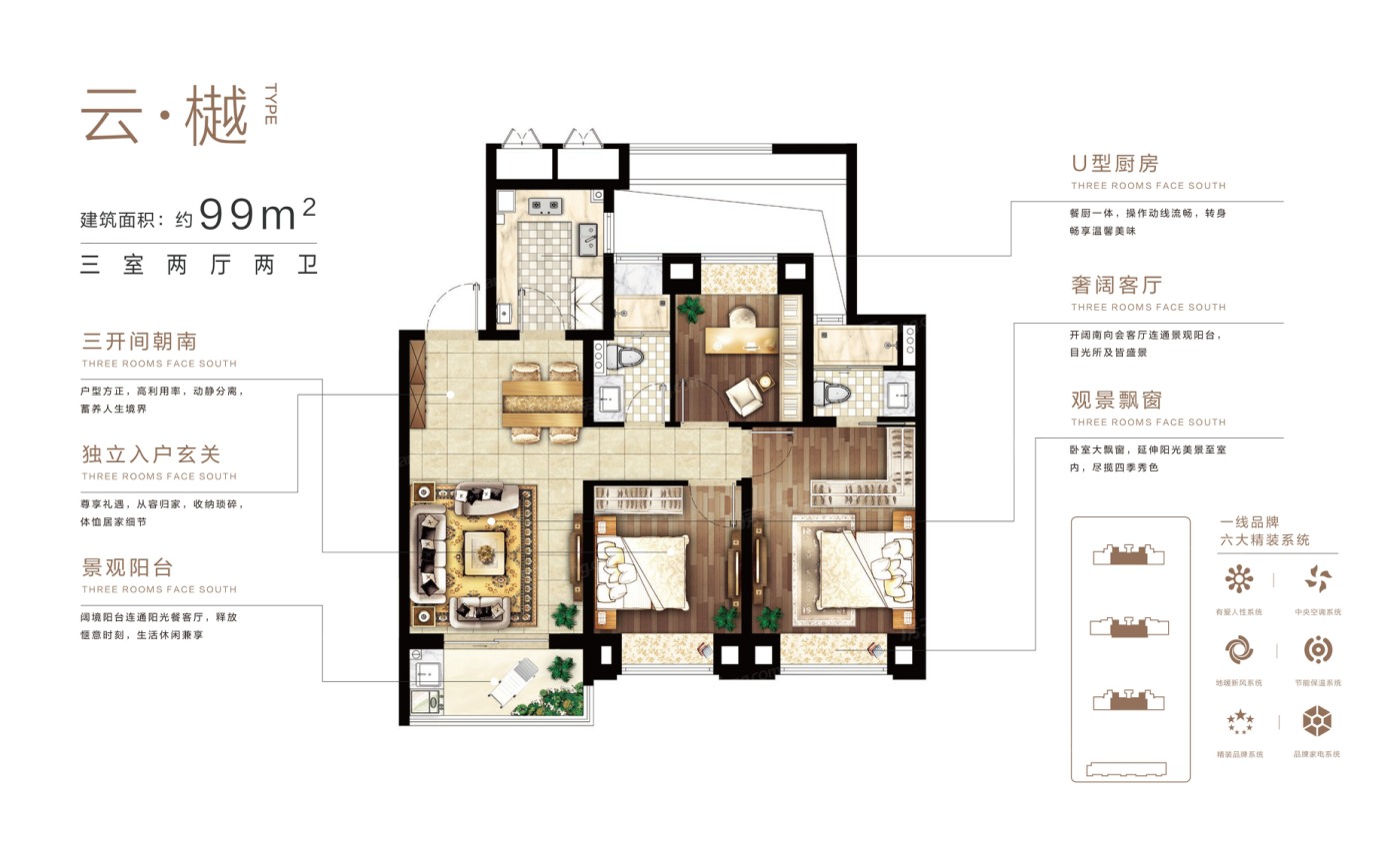 绿化率高,空气质量佳,小户型99㎡性价比突出,居住舒适度有保障。