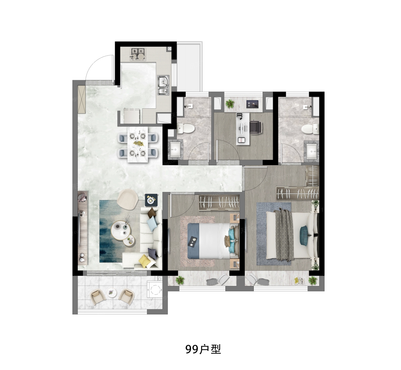 99㎡的户型很不错,性价比相对高。产权是70年,属于住宅大产权,水电费也按民用标准来,使用年限有保障。整体来看,这个选择很值得关注。