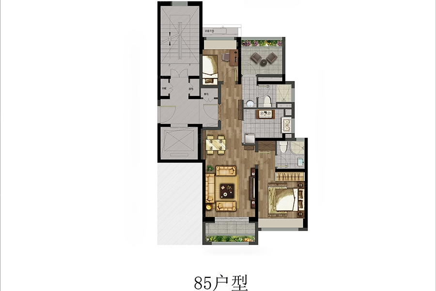 这个楼盘提供5种户型选择,面积范围从85到115平方米。我倾向于选择面积较小的户型。小区绿化做得不错,住在这里就像置身于公园中。